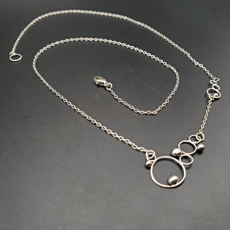 Comme les boucles d’oreilles bulles, ce collier reprend comme motif les petites bulles des ruisseaux de montagne.