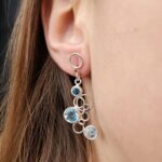 Boucles d’oreille chandelier « Bulles » en argent et topazes