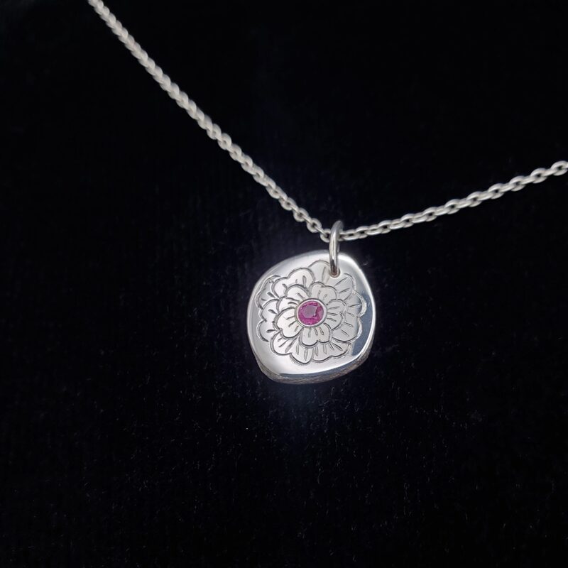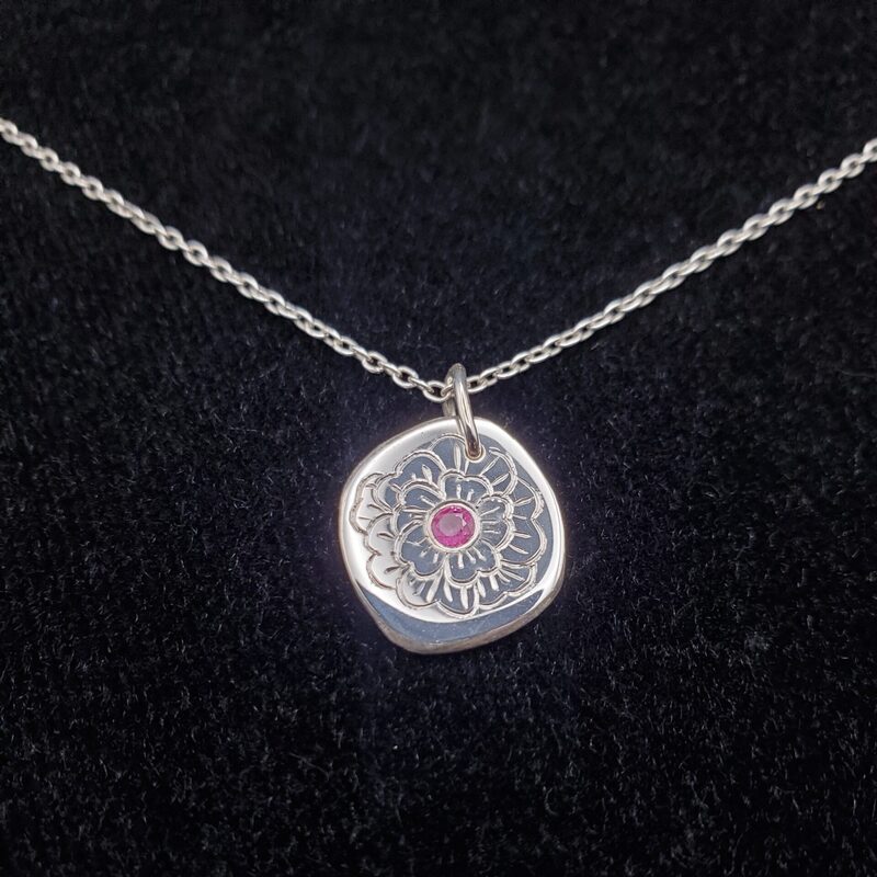 UGS : medaillon-en-argent-et-rubis-grave-main-a-motif-de-pivoine-325