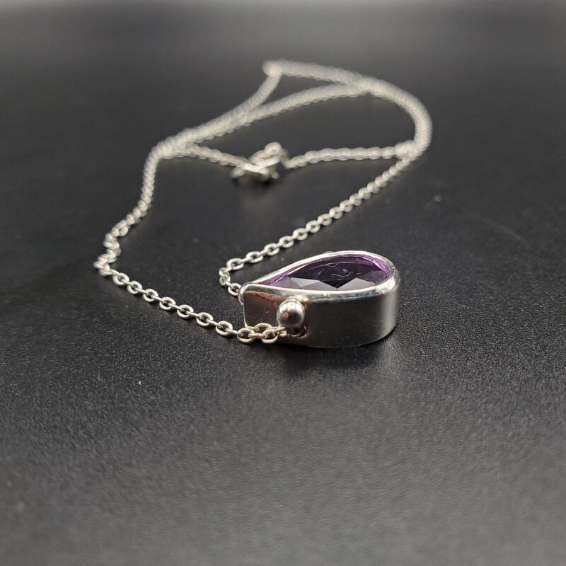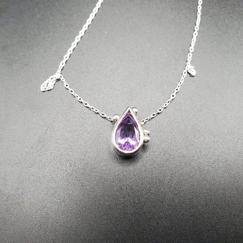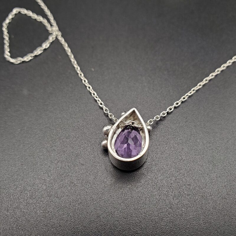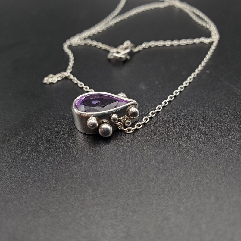 16 septembre 2025Pendentif améthyste poire et granules d’argent